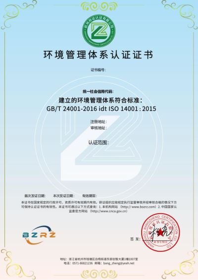 ISO 14001环境管理体系认证