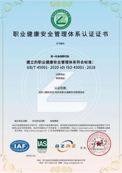 ISO 45001职业健康安全管理体系认证